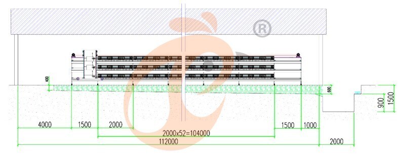 1. Dimensions du bâtiment : 112* 12* 3 mètres