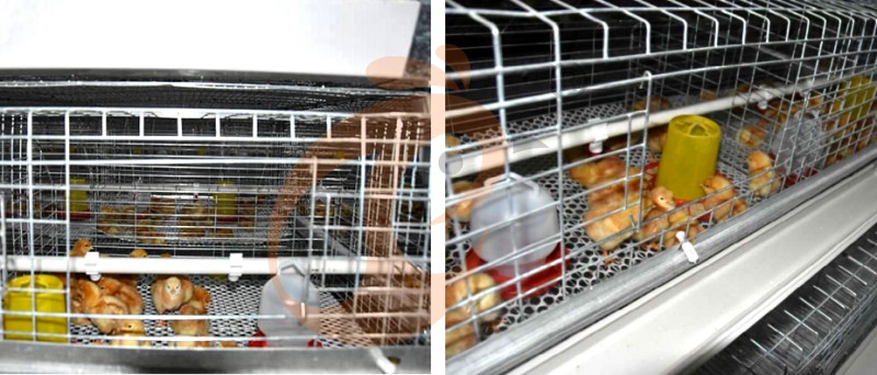 Après que les poulettes aient plus d'une semaine, les ouvrières déplacent les petits abreuvoirs, les poulettes boivent de l'eau en touchant les abreuvoirs à tétine.